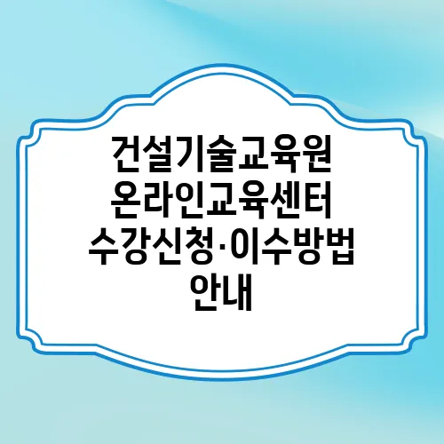 건설기술교육원 온라인교육센터 수강신청 및 이수방법에 대한 안내를 드리겠습니다. 이 글을 통해 건설기술교육원이 제공하는 다양한 온라인 교육 과정에 대한 이해를 돕고, 수강신청, 이수 방법에 대한 상세 정보를 공유하고자 합니다. 건설기술교육원은 건설 산업 발전을 위한 전문 교육을 제공하는 기관으로, 전문가나 직무에 관심 있는 분들에게 큰 도움이 됩니다. 함께 알아보도록 하겠습니다.