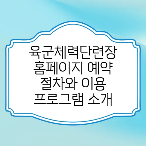 안녕하세요! 오늘은 육군체력단련장 홈페이지를 통해 예약하는 방법과 다양한 이용 프로그램에 대해 알아보도록 하겠습니다. 안전하고 체계적인 체력 단련을 위해 많은 사람들이 육군체력단련장을 찾고 있습니다. 이를 통해 육체적 능력을 향상시키는 데 큰 도움이 되죠. 이제 실제로 홈페이지에서 예약을 하는 절차와 어떤 프로그램이 제공되는지 함께 살펴보겠습니다.