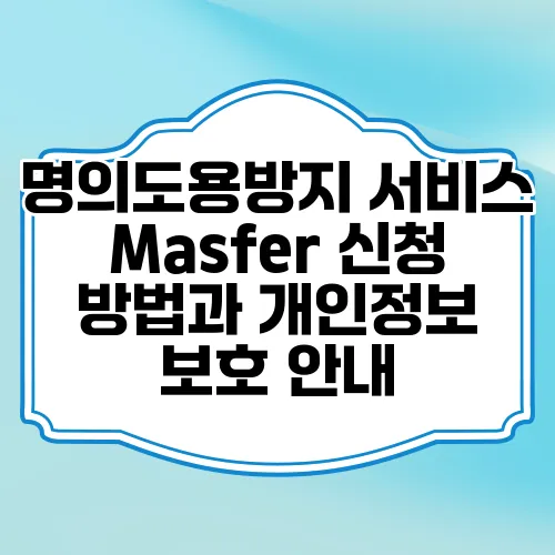 오늘날 디지털 환경에서 개인정보 보호는 매우 중요한 이슈로 떠오르고 있습니다. 특히, 명의도용의 위험이 높아지면서 이에 대한 예방책을 마련하는 것이 필요합니다. 명의도용방지 서비스인 Masfer는 고객의 개인정보를 안전하게 지키고, 이런 위험으로부터 보호하는 유용한 방법입니다. Masfer 신청 방법과 함께 개인정보 보호에 대한 내용을 자세히 알아보도록 하겠습니다.