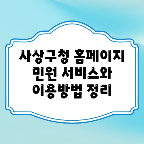 사상구청 홈페이지는 지방 행정 서비스의 중추로, 주민들이 필요로 하는 다양한 민원 서비스를 제공하고 있습니다. 그러나 처음 방문하는 사람이라면 어떻게 이용해야 할지 막막할 수 있습니다. 오늘은 사상구청의 홈페이지에서 제공하는 행정 서비스와 그 이용 방법을 친절하게 안내해 드리겠습니다. 누구나 쉽게 이해할 수 있도록 복잡한 용어는 최대한 간단히 설명하고, 필요할 때는 예시를 통해 더 깊이 있는 이해를 돕겠습니다. 그럼, 사상구청의 민원 서비스와 홈페이지 이용 방법에 대해 함께 알아보도록 하겠습니다.