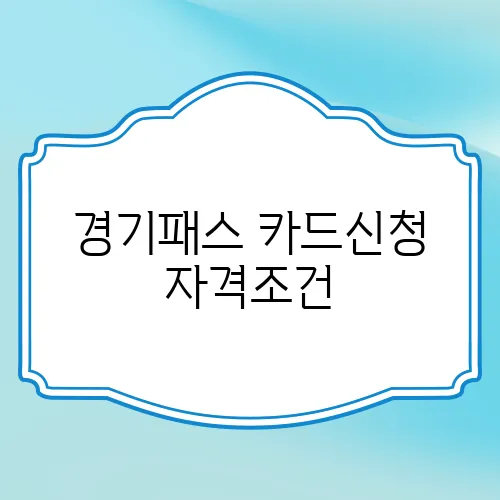 먼저 경기패스 카드를 신청하기 위해서는 필요한 자격조건이 있습니다. 이 조건들에 해당하는지를 확인해 보시는 것이 좋습니다. 다음을 참고하세요:
