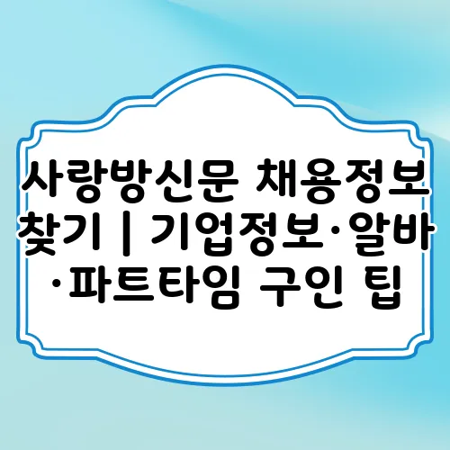 사랑방신문은 다양한 구인정보를 제공하는 플랫폼으로, 특히 알바와 파트타임 구인 정보를 손쉽게 찾아볼 수 있는 장점이 있습니다. 이 신문은 지역 밀착형 정보를 제공하여, 주변에서 일할 수 있는 일자리 검색에 큰 도움이 됩니다.