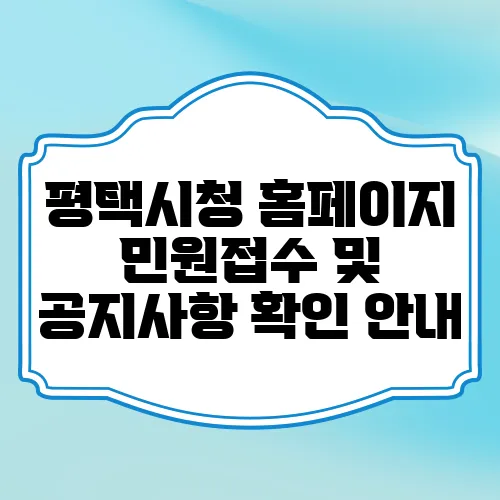 안녕하세요, 오늘은 평택시청의 홈페이지를 통해 민원접수 및 공지사항을 확인하는 방법에 대해 알아보겠습니다. 평택시는 행정서비스를 원활히 제공하기 위해 다양한 민원서비스를 온라인으로 지원하고 있습니다. 이 글을 통해 간편하게 필요하시고 궁금하신 정보를 안내해 드리고자 합니다. 시작해 볼까요?