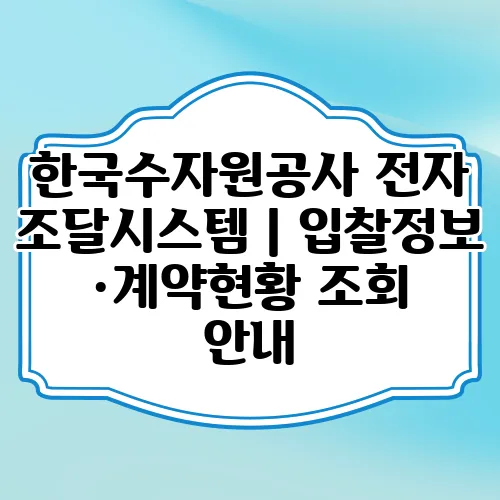 안녕하세요! 오늘은 한국수자원공사의 전자조달시스템에 대해 알아보겠습니다. 특히 입찰정보와 계약현황 조회 방법을 중심으로 설명드릴 예정입니다. 이 시스템을 활용하면 공공 조달 절차가 얼마나 편리해지는지에 대해 구체적으로 살펴보겠습니다. 이 글을 통해 정보가 가득한 블로그 포스팅이 되길 바랍니다.