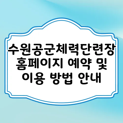 수원공군체력단련장 예약은 공식 홈페이지를 통해 가능합니다. 홈페이지에 접속한 후 '예약하기' 메뉴를 클릭하고 필요한 정보를 입력하여 예약 절차를 완료하세요.