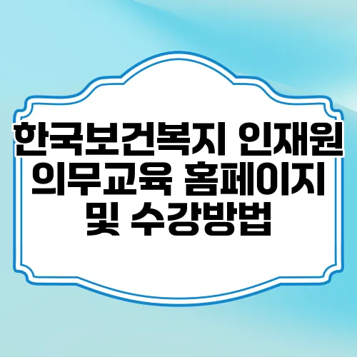 홈페이지에 접속하는 것은 매우 간단합니다. 인터넷 브라우저에서 한국보건복지인재원 공식 웹사이트를 검색하거나 입력하면 됩니다. 초기 화면에서 의무교육 섹션을 찾을 수 있으며, 클릭 후 안내에 따라 로그인 절차를 거치면 교육과정을 자유롭게 선택할 수 있습니다.