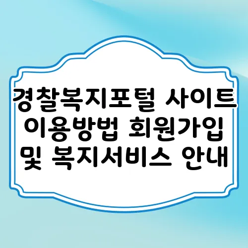 안녕하세요! 오늘은 경찰복지포털 사이트 이용방법과 회원가입, 그리고 다양한 복지서비스에 대해 알아보도록 하겠습니다. 경찰복지포털은 경찰관 및 그 가족이 다양한 복지 서비스를 쉽고 편리하게 이용할 수 있도록 도와주는 플랫폼입니다. 사이트의 기능과 복지 서비스에 대해 자세히 알아보며, 어떻게 하면 손쉽게 회원가입을 하고 필요한 정보를 찾을 수 있는지 함께 살펴보겠습니다. Shall we explore together?